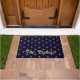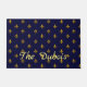 Elegantes, goldfarbenes Lilie-Muster auf dunkelmarineblau-blauem Hintergrund.