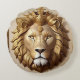 Detaillierte künstlerische Darstellung eines regalen Löwen mit einer Krone auf einem kreisförmigen goldenen Emblem, das Stärke, Adel und königliche Autorität repräsentiert.