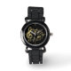 Uhr, Vintage Männeruhr mit schwarzem Lederarmband