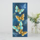 Zusammensetzung aus Fliegen, Schmuck, Gold und dunklen Schmetterlingen auf texturiertem Schmuckhintergrund. Goldener Schmetterling.