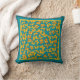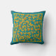 Ein hübsches Kissen oder Kissen, mit einem Muster aus goldenen Schmetterlingen, handbemalt in Aquarell von Judy Adamson, auf einem aquamarinen Hintergrund.