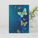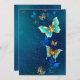 Fliegendes Gold, Schmuckschmetterling auf blauem texturalem Hintergrund. Design mit Schmetterlingen.