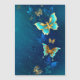 Goldene Schmetterlinge auf blauem Hintergrund Magnetkarte
