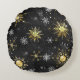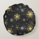 Goldene Schneeflocken auf schwarzem Hintergrund Rundes Kissen