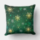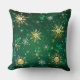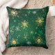Goldene Schneeflocken im grünen Hintergrund Kissen