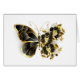 Goldener Schmetterling mit schwarzem Schmuckorchid, mit goldenen Blätter auf weißem Hintergrund dekoriert.