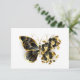 Goldener Schmetterling mit schwarzem Schmuckorchid, mit goldenen Blätter auf weißem Hintergrund dekoriert.