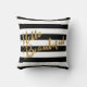 Das Gruß "hallo schöne" übertragen im Imitatgold macht einen Eindruck gegen das Kontrastieren der Schwarzweiss-Streifen auf diesem Kissen. Eine hübsche Weise, Vertrauen aufzuladen.