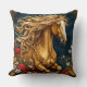 Ein zauberhaftes Bild eines goldenen Pferdes mit fließender Mähne, die von pastellfarbenen Blume geschmückt ist und Schönheit und Eleganz hervorruft. Zeigt Details und Charme, ansprechend für Natur- und Pferdefreunde.