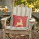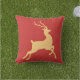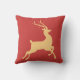 Goldenes Weihnachtsren, das Kissen im Freienmit einem roten nett laufenden Nasenren springt.