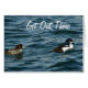 Dieses KarrenGoldeneyepaar schwimmen entlang der Tacoma-Ufergegend an einem sonnigen Wintertag. Der Mann in seinem Schwarzweiss-Gefieder ist voran, wenn seine Ehefrau oben die Rückseite holt, in ihren braunen und grauen Farben. Beide haben das charakteristische helle gelbe Auge, für das sie genannt werden. Die gelbe Rechnung der Frau und die sichelförmige weiße Gesichtsmarkierung des Mannes zeigen, dass sie die Karren eher als der gemeine Goldeneye sind. Gegen das blaue Wasser an der Spitze des Bildes sind die Wörter, "hinausgehen dort" in weißes Skript. Innerhalb der Karte liest, "wir spazierengehen, sie anstreben ein Schwimmen. Jede Weise, genießen Ihren Tag!" Karo heraus ihre Besuche zu Puget Sound Audubons in der Puget- Soundseevogel-Übersicht: http://seattleaudubon.org/seabirdsurvey. Fotocopyright Gail Storrs 2015.