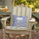 Goldfolie Anker blau weiße Streifen nautische Sommer werfen Kissen. Im Mittelpunkt dieses schicken nautischen Designs steht der goldene Anker und Ihr Name auf einem weißen Rahmen mit goldener Kontur.