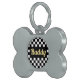 Erstellen Sie Ihre eigenen, personalisierten, kühlen Imitate Gold rustikale Vintage Western Drehbuch / Typografie individuelle Name vorne und hinten, und Retro coole chic stilvolle geometrische trendige Schwarz-weiße karierte Karos Schachbrett Muster Hintergrund, UV-resistent und wasserdicht, verbrannt silberne, knochenförmige Haustier Katze Hunde Hündchen Hündchen Kätzchen ID-Tag. Geben Sie einfach den Namen Ihres Haustieres / Ihren Text ein, um ihn anzupassen. Ideal zum Geburtstag, Weihnachten, Ferien, neue Jahre und mehr, für Haustier Hund / Katze Besitzer, Freunde und Familie.