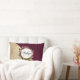 Ein Kissen mit goldenem Marmormuster und eine solide bordeauxfarbene, diagonal überlagerte Farbe. Ein Kreis mit einem Imitat mit Goldfolie überlagert einen hübschen Blumenstrauß mit Rose, Nelken und anderen Blume. Personalisieren Sie mit Ihrem Vor- oder Nachnamen und Monogramm im Kreis.