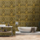 Ziehen und kleben Sie Tapete goldenes Muster auf schwarzen Hintergrund Tapete. Ein tolles Gaumenprojekt für Mieter, Hausbesitzer und Innenarchitekten. Erstellen Sie ein personalisiertes Aussehen für Ihr Zuhause condo Apartment Büro oder Geschäft. Dekorieren Kerzenhalter Untersetzer Möbel Küche Background Türverkleidungen Kopfbrett Lagerbehälter Container.