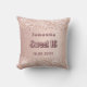 Ein Kissen für ein gemütliches Mädchen-Zimmer im 16. und 16. Jahrhundert. Eine Rose goldener Hintergrund mit Konfetti. Personalisieren und einen Namen hinzufügen. Sweet 16 ist in dunklem Rose Gold mit einem großen modernen Drehbuch geschrieben.