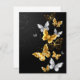 Gold, Schmuck und weiße Schmetterlinge auf schwarzem Hintergrund. Goldener Schmetterling.