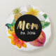 Dieses trendy Blumenausrüstungsbeschreibungen eine Vielzahl der tropischen Blumen mit einer schwarzer Kreis und das Wort "Mama" im Goldfolienskript mit der Phrase "Est. Jahr" unter ihm im weißen Text. Vervollkommnen Sie für jede mögliche Mamma!