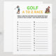 ⭐️ Was es ist: Golf A To Z Race Game ist ein Party-Spiel. Schreiben Sie ein golfbezogenes Wort, das mit jedem Buchstaben des Alphabets beginnt. Die erste Person Finish gewinnt!