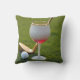 Ein einzigartiges Weinglas in Form eines Golfballs, teilweise mit Rotwein gefüllt, liegt auf einem üppig grünen Rasen neben einem Golfclub und einem Ball