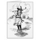 Girl Playing Golf in den 1800er Jahren - Für alle Golfprofis da draußen ist dies eine sehr frühe Golferin, die den Platz nimmt. Sie stammt aus einem alten Buch aus dem 18. Jahrhundert, das kleine Mädchen nimmt einen Schwung. Das Golfmädchen trägt einen großen Hut mit einer Feder, die für Viktorianische Mädchen typisch ist, und trägt lange Strümpfe und ein kurzes sportliches Kleid. Das Golfwetter ist schön - eine schöne weiße Wolke ist im Hintergrund und ein Haus. Ihre Kaddy ist am Rande gewartet. Das Bild ist eine Schwarz-Weiß-Linie zeichnend, aus einem Buch aus dem späten 19. Jahrhundert.