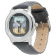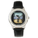 Uhr, Vintage Männeruhr mit schwarzem Lederarmband