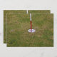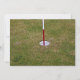 Golfplatz auf Grün mit rotem und weißem Vorhängeschild. Fotografie.