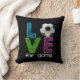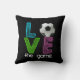 Fantastisches Fußball Throwkissen mit der Phrase "LIEBE das Spiel." Das "O" wird durch einen Fußball ersetzt.