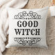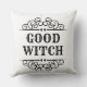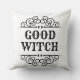 Bist du eine gute Hexe oder eine schlechte Hexe? Feiern Sie Halloween im Stil mit dieser maßgeschneiderten "Good Hexe"-Typografie werfen Kissen, die mit Ihrem bevorzugten Good oder Bad oder Other Witch Text angepasst werden können. Weißer Hintergrund (kann individuell angepasst werden) mit schwarzem Dekorationstext und Scrolldesign.