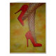 Goody Two Shoes ist ein originelles Gemälde in Rot und Gelb einer Frau, die Fisch-Strumpf und hellrote Schuhe trägt. Ein einzigartiges Geschenk mit einem Modethema, ideal für Rote Shoe Day Kampagnen oder Red Shoe Walks. Ideal für diejenigen, die Leggings, Strumpfwaren und Mode, Liebhaber eines Grunge-Look, oder Fetischisten von Strümpfen und High Heels Liebe. © Malerei 2008