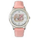 Kinderuhr aus Edelstahl mit rosa Lederarmband