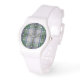 Eine wunderbare Damenuhr mit weißem Armband und grün-weiß-kariertem Ziffernblatt. Trägt sich ganz fabelhaft. Exzellenter Druck, sehr klare Farben. Schönes Design.