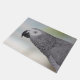 Gelehnter Hals und ein schönes Gesicht auf diesem Kongo Afrikanischen Gray Parrot vor einem gedämpften pastellfarbenen Hintergrund.