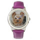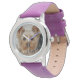Uhr, Kinderuhr aus Edelstahluhr mit lila Lederarmband
