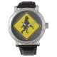Uhr, Vintage Männeruhr mit schwarzem Lederarmband