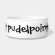 Pudelpointer Inhaber, Züchter und Trainer, führen Ihren Pudelpointer Stolz vor, während das Füttern Ihres vielseitigen Jagdhundes in der Art mit diesem "got Pudelpointer?" Hundeschüssel!