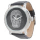 Gothic grunge schwarz-weiß Schädel spooky einzigartige Männer Handgelenke Uhr. Cooles, trendiges, modernes, beängstigendes, cooles, individuelles Halloween-Design. Bildrecht Marg Seregelyi Fotografie.