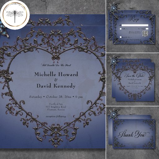 Gothic Black & Blue Filigree Heart WeddingDesignt von Kathe Santillo