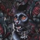 Gothic Black Cat & Dark Flowers Pattern Tapete
