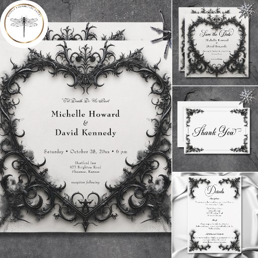 Gothic Black & White Filigree Heart WeddingDesignt von Kathe Santillo