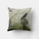 Krähen im grünen Nebel auf einem Friedhof auf einem Kissen, die gut in einen gotisch dekorierten Raum passen würde. Eine Seite unterscheidet sich leicht von der anderen.