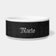 Cooles gotisches makabre Schwarz-Weiß-Design. Grunge Textur Druck halb Schädel Kopf Hund Wasser Schalen. Spooky, gruselig, böse, finster. Benutzerdefinierter Text zum Anzug Ihrer Bedürfnisse. Trendy, einzigartig, modern, beängstigende Halloween inspiriert Haustierzubehör. Bildrecht Marg Seregelyi Fotografie.