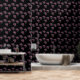 Schwarz-Rosa-Gotische Blume Tapete hübsche Tapete mit rosa Blume im gotischen Stil auf schwarzem Hintergrund.