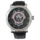 Gotische Liebe | Rosa und schwarze Skelette Herz B Armbanduhr
