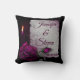 Ein personalisiertes Hochzeitskissen, das an dieses besondere Wort erinnert. Entworfen mit einem gotischen Look. Ein altes graues Pergamentpapier mit lila-roten Farbtupfern an den Kanten. Eine magentafarbene Rose in voller Blüte, ein Rosenbud, eine Kerze und ein silberner Schrank auf dunkelbordeauxfarbenem Hintergrund schaffen ein schönes, dunkles und geheimnisvolles gotisches Design.