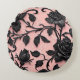 Gotische schwarze Rose auf dem runden Kissen des Weingutes. Rosa Hintergrund vorne. Die Rückseite ist massiv rosa. Für Ihre Zuhause oder heiligen Platz.