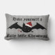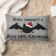 Ein lustiger Cartoon, eine alberne Goth Fledermaus, die eine Weihnachtsmannmütze trägt und einen Bonbonstock auf grauem Damast hält. Hier auf einem Lumbalkissen mit der Aufschrift "Viel Weihnachten!" gezeigt. Niedliche und angenehme Gestaltung für die Ferien. Das würde auf einem grauen oder schwarzen Stuhl oder Sofa großartig aussehen.