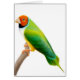 Gemälde einer Gouldianfinch von Lady aus Australien in mutierten Farben von Carolyn McFann von Two Purring Cats Studio gedruckt auf tolle Artikel für Vogelliebhaber.