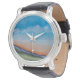 Uhr, Vintage Männeruhr mit schwarzem Lederarmband