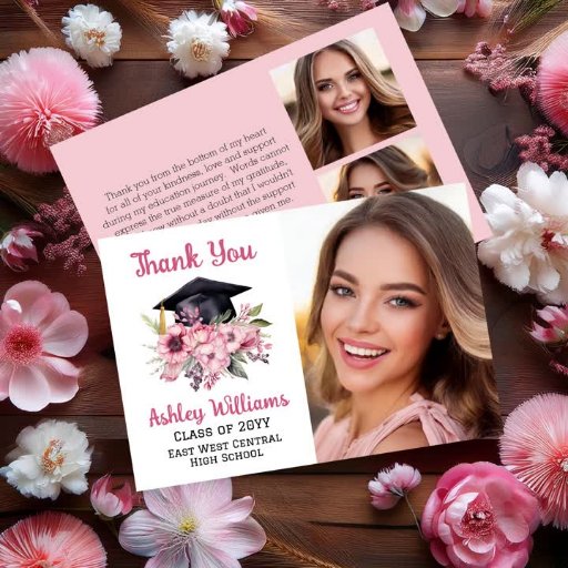 Grad Cap und Pink Florals 3 Foto Sie tat es Ankündigung